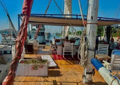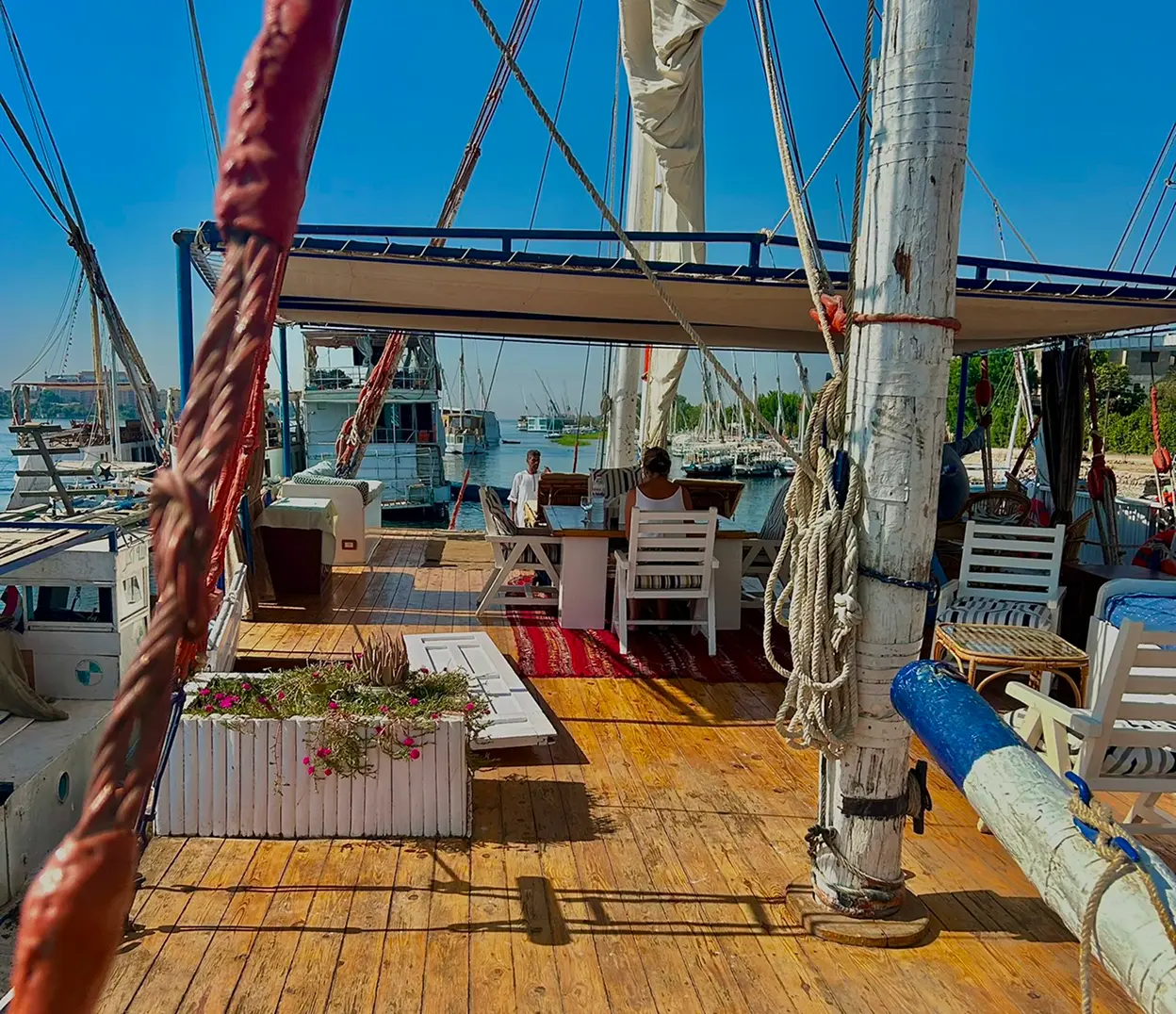 Pour les amateurs de croisière, nous proposons des croisières privées à bord de sandals ou de dahabiehs, véritables voiliers traditionnels égyptiens. Votre bateau portée par la force du vent, vous offre une expérience intime et raffinée, avec un équipage attentioné et un chef qui sublime la gastronomie égyptienne à bord.